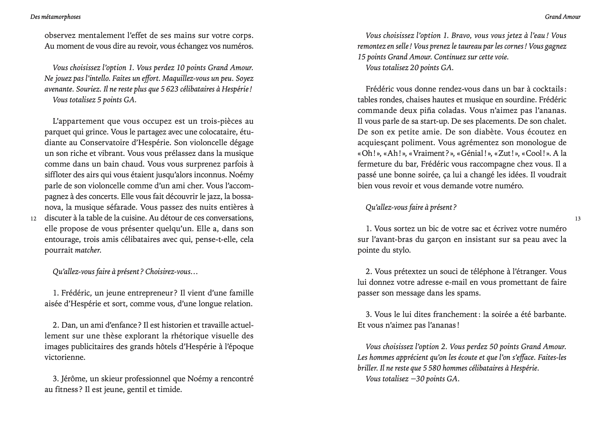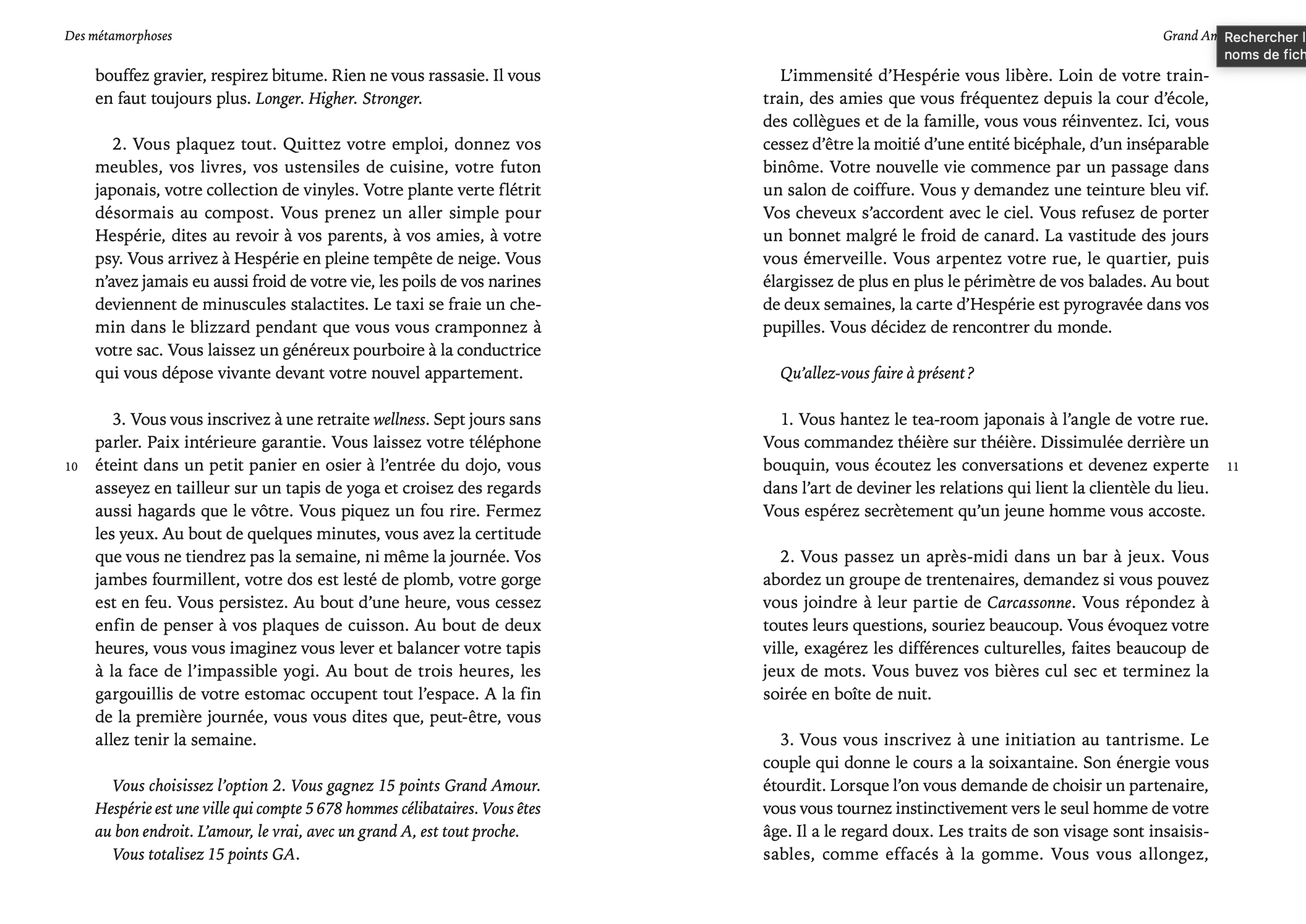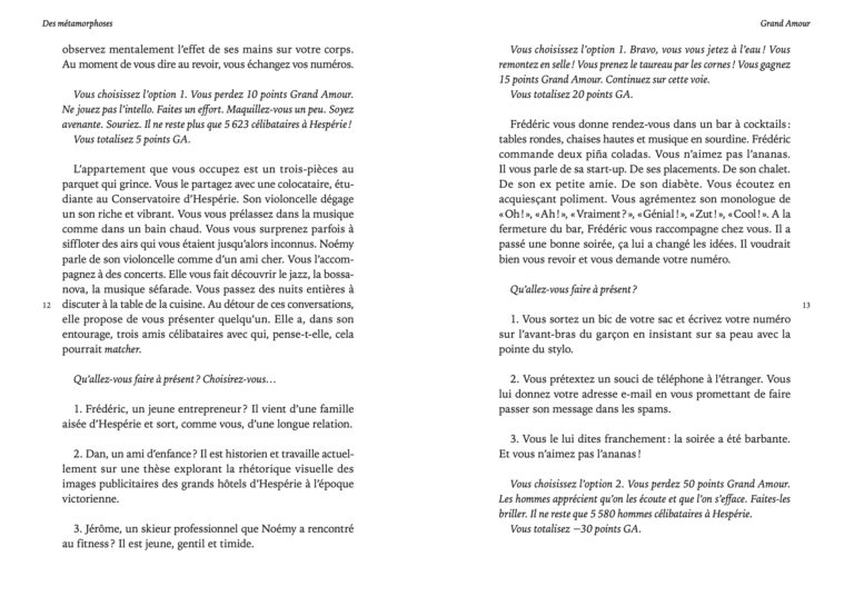 Bienvenue à Hespérie ! Dans cette ville, on chercher le grand amour, la réussite, le bonheur… et on peine à les trouver. Sara enchaîne les relations foireuses, Claire jongle avec ses enfants, Charles court après sa vocation, Gabrielle veut obtenir justice et Sandrine s’ennuie au bureau. Voilà des trentenaires qui nous ressemblent étrangement. « Il faudrait tendre un miroir à l’intérieur de votre être pour voir à quel point vous avez changé. »